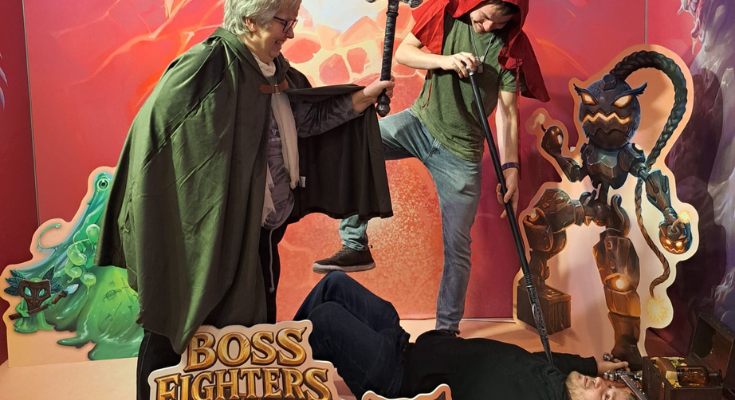 Kai wollte unbedingt Boss Fighters ausprobieren. Ich war anfangs eher skeptisch, weil das Spiel so stark auf Tablet und App setzt. Die Tische waren natürlich alle besetzt, also stellten wir uns zu dem, der wohl am schnellsten frei werden würde. Nach etwa 40 Minuten Wartezeit waren wir endlich dran.