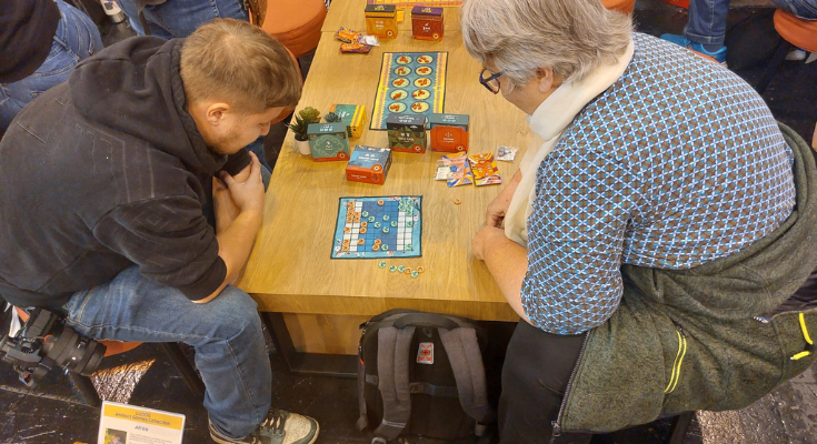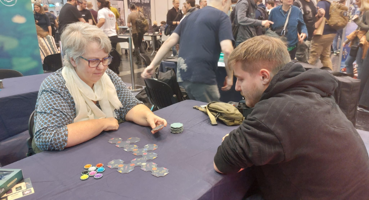 Kaum fünf Minuten im Spiel, hatte ich völlig vergessen, dass wir mitten auf der SPIEL in Essen waren. Das Spiel zog mich sofort in seinen Bann! Besonders cool fand ich, dass man ohne Regelstudium direkt loslegen konnte – eine kurze Einweisung, und schon ging’s los.